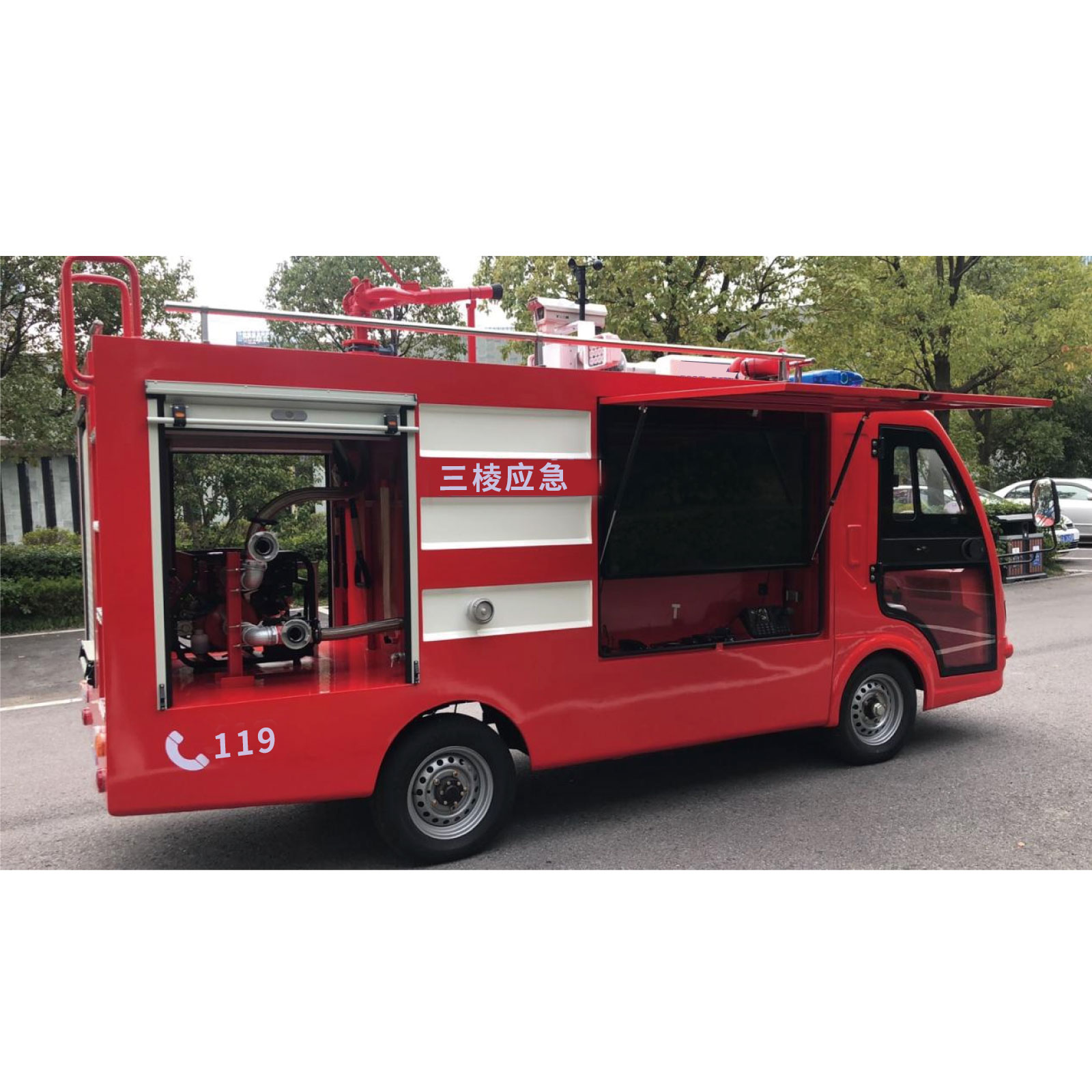 Sanleng mobile emergency rescue station, designed in the form of miniature fire truck, has functions of fire fighting, emergency fire knowledge publicity and experience. It can not only meet the disposal of small and sudden accidents around, but also can be used to train the residents of the area for emergency fire fighting knowledge and improve safety emergency skills. Simple operation, flexible scheduling, easy to sink to a specific small scene,making the last kilometer of emergency rescue happen.