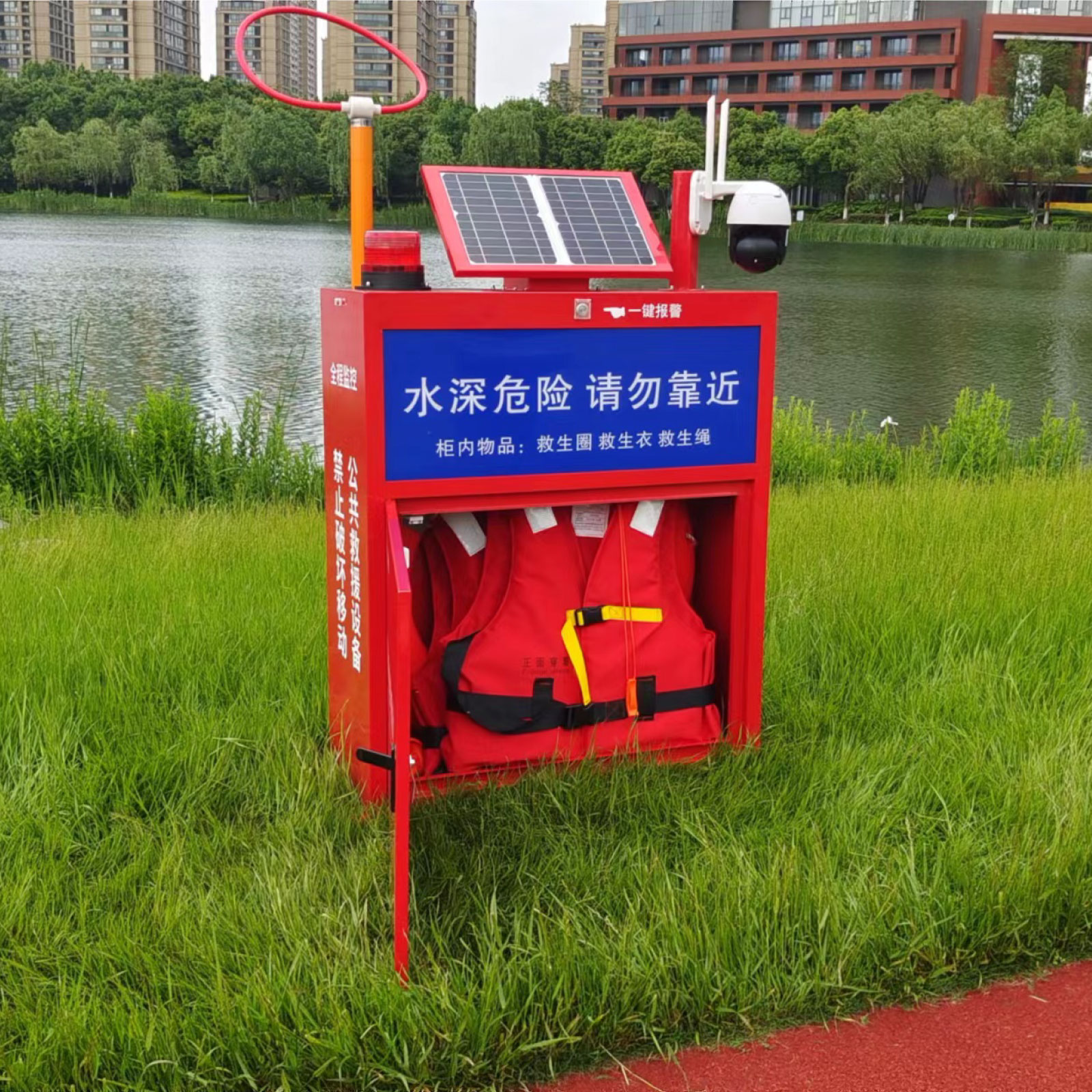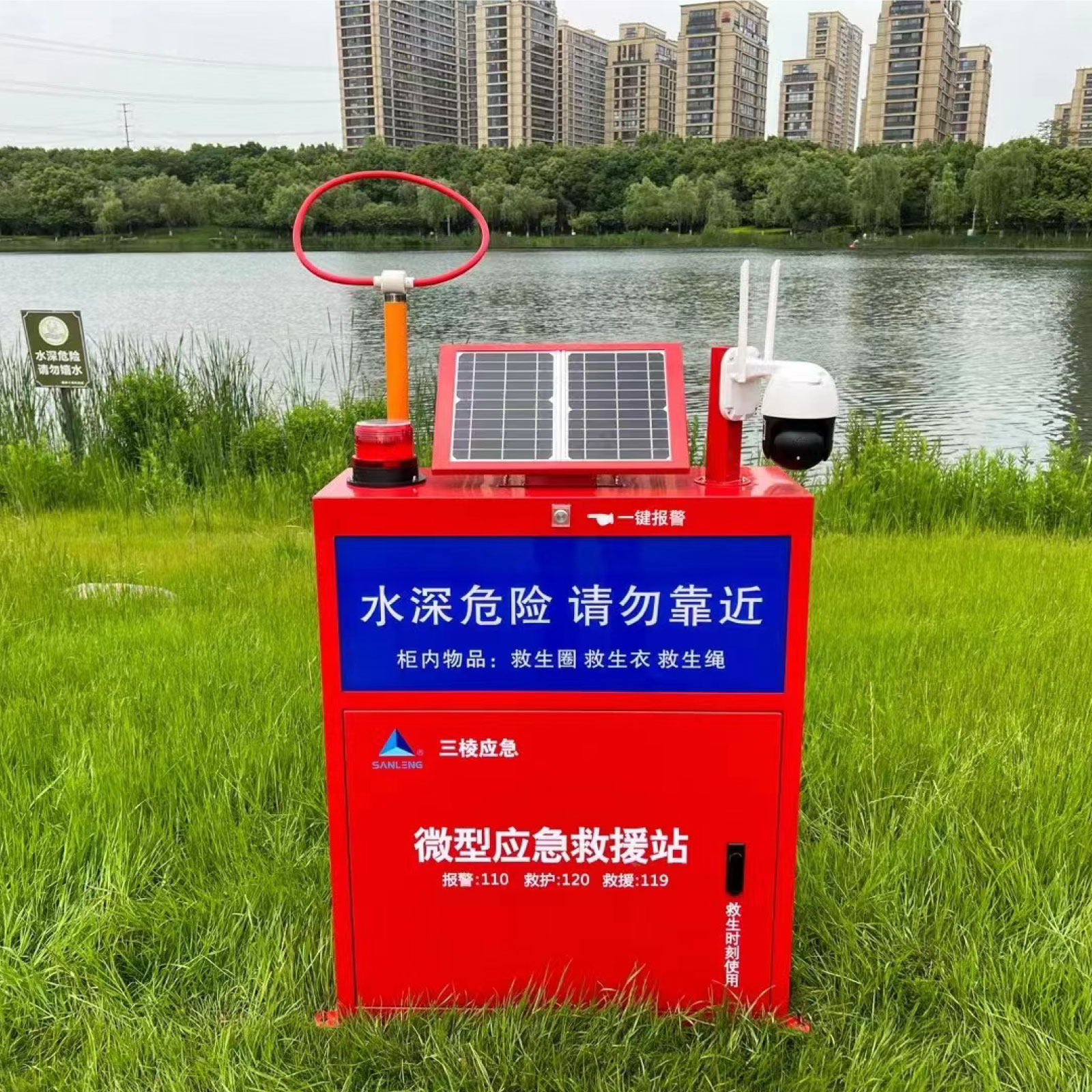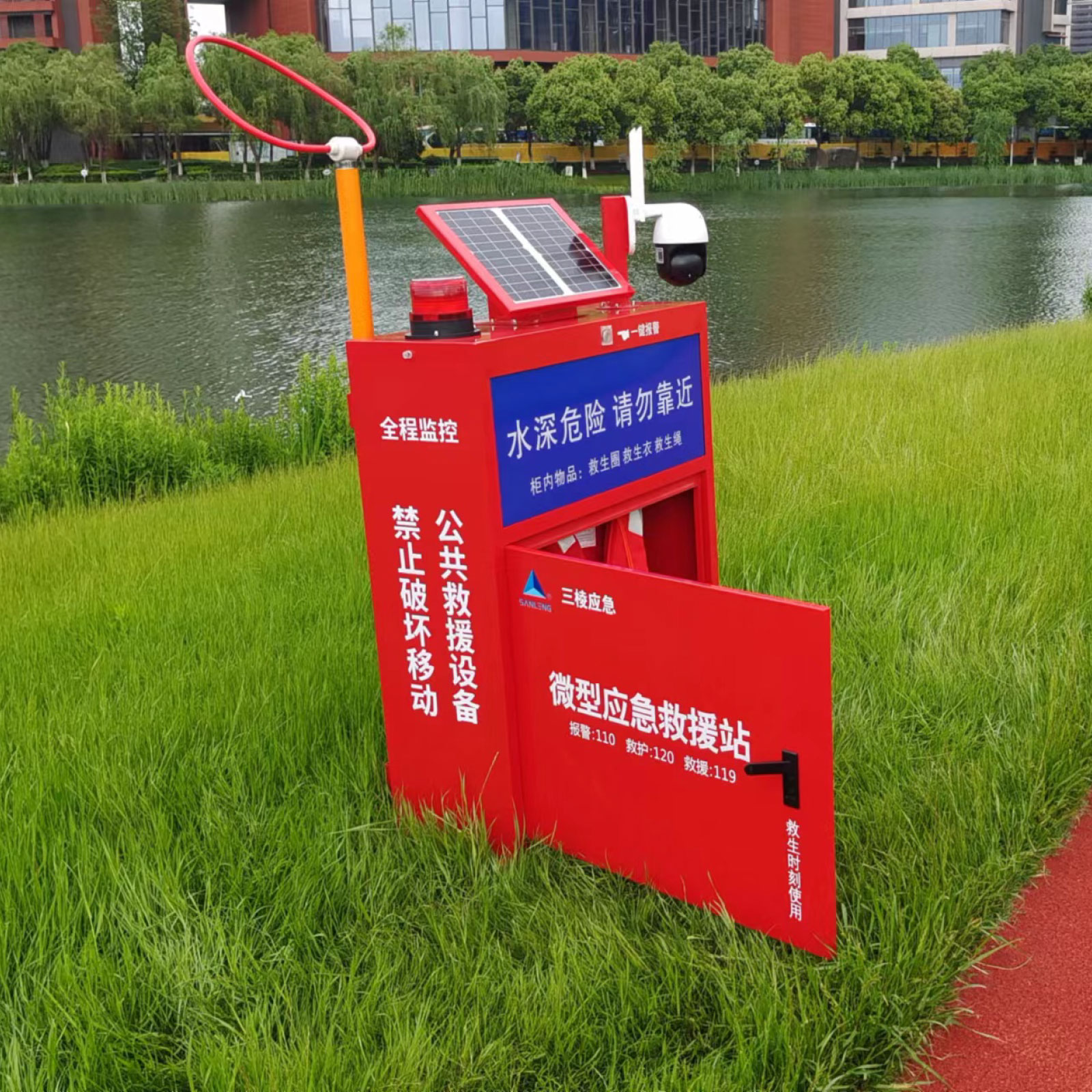 三棱智慧型水域微型应急救援站/水域多功能智慧安全救援柜/水域智能消防柜/防溺水公共水域救援设备,利用物联网、互联网和人工智能技术,结合水域应急救援物资,实现24小时对溺水风险区域、河长责任区域进行监控预警,并提供救生辅助物资,以及远程救援协调,大大降低溺水事故和提高救生效率,维护水域安全。