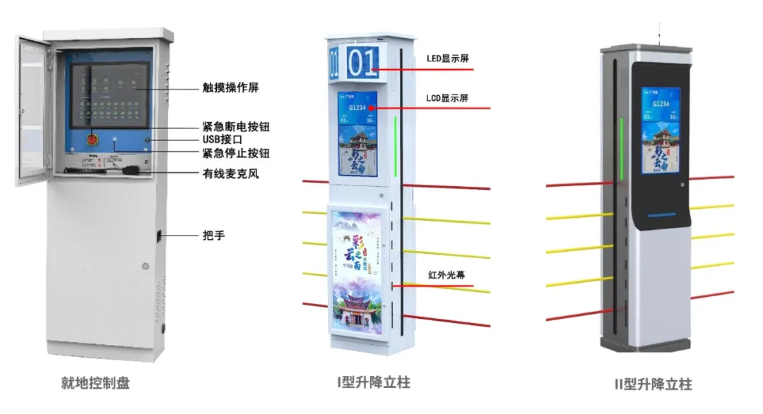 站台安全防护控制系统由就地控制盘和智能升降立柱组成,通过升降立柱之间连接的安全绳把候车区和非安全区隔离开,通过读取旅服平台车次到发信息,实现与车站旅服系统智能一体化运行